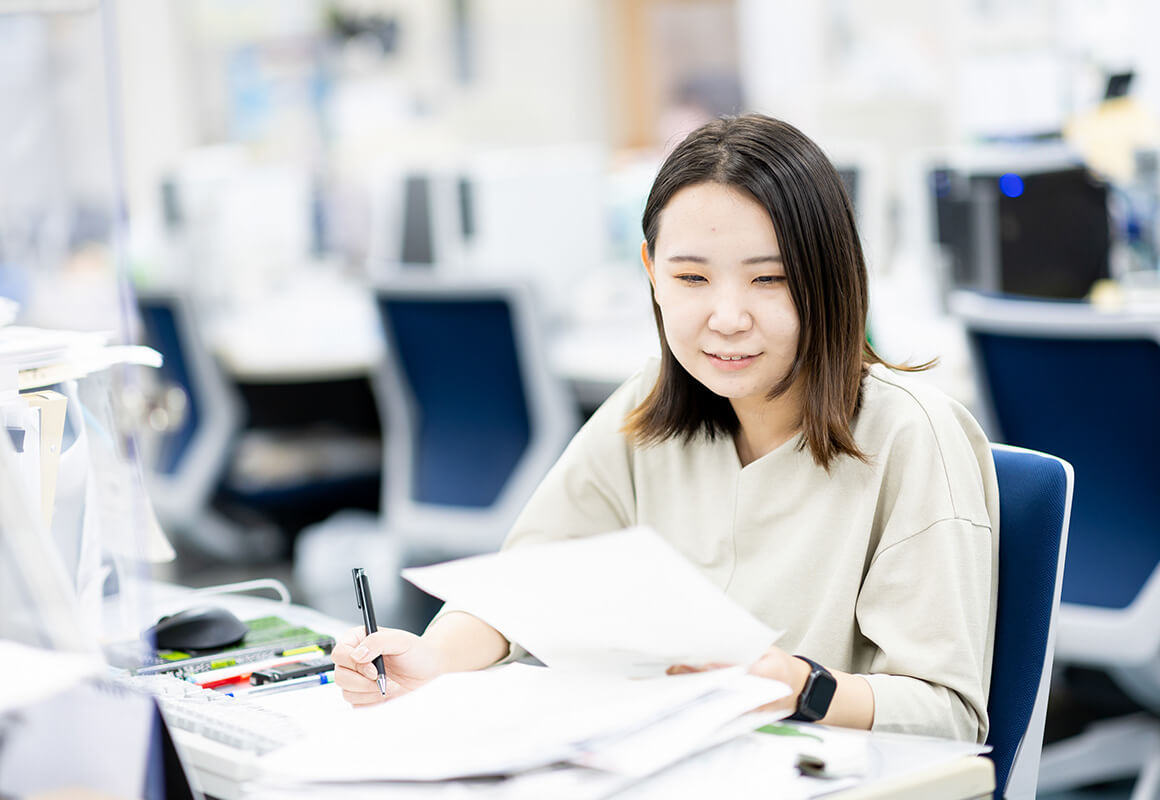 金融機関や事業会社などを取材先に、経営者から新入社員までさまざまな人に会い、話をし、ニュースを見つけて原稿を執筆、世の中に伝えるのが仕事です。記者は、名刺一枚で誰にでも話を聞くことができます。自分の問題意識をもとに人脈を使って情報を集めます。一人で書き上げることもあれば、数人のチームで連載や特集を組むことも。金融機関の本支店などを回り、新聞を販売するのも重要な仕事です。記事が評価され購読につながった時は、充実感を得られる瞬間です。読者と距離が近く、仕事の社会的意義を実感できるのが大きな魅力です。
